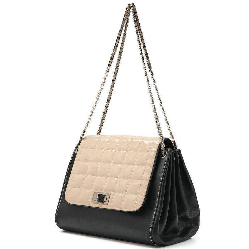 Gebrauchte Umhängetasche, Choco Bar, 2,55-Zoll-Schloss, Kettenschulter, Lammleder, Elfenbein, silberfarbene Hardware, gebraucht