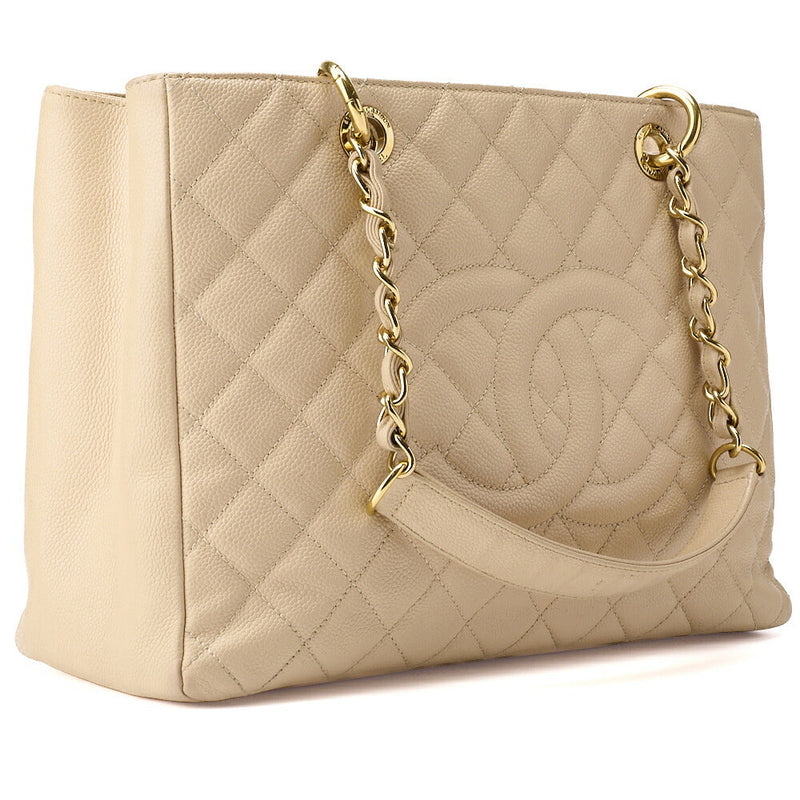 Pre-Owned Schultertasche Matelassé Kaviar Haut Beige Silberfarbene Hardware Pre-Owned