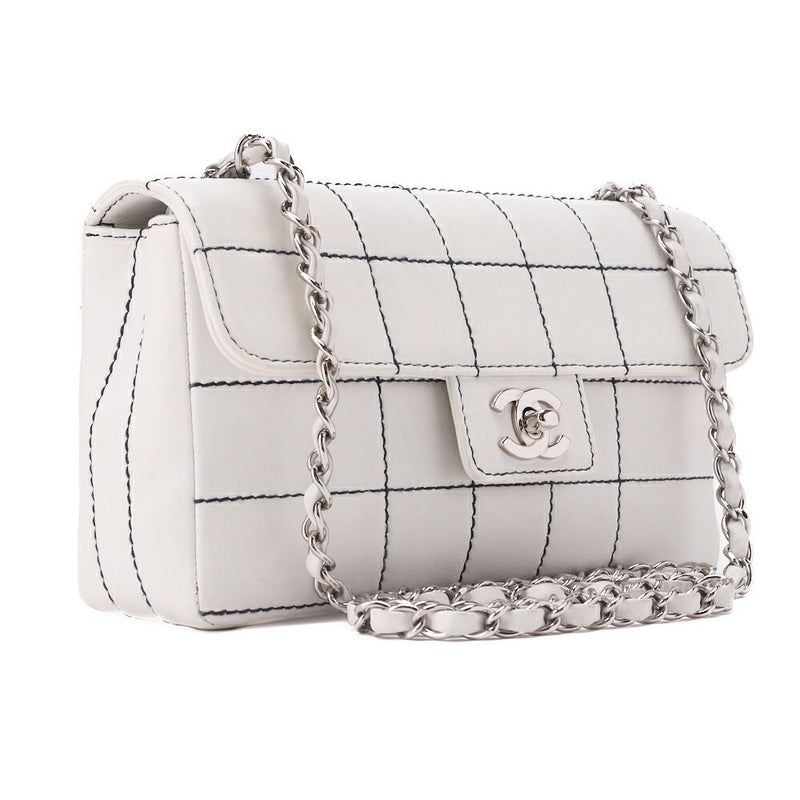 Pre-Owned Schultertasche Choco Bar Drehverschluss Lammleder Weiß Silberfarbene Hardware Pre-Owned