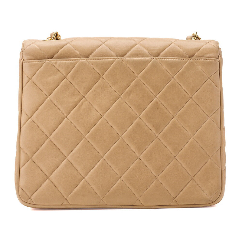Pre-Owned Schultertasche Matelassé Doppelklappe Lammleder Beige Goldfarbene Hardware Pre-Owned