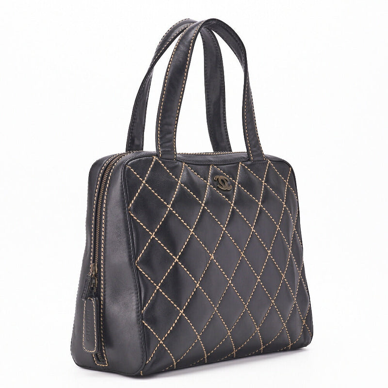 Gebrauchte Tragetasche, Coco Mark Wild Stitch, Kalbsleder, Schwarz, silberfarbene Metallteile, gebraucht