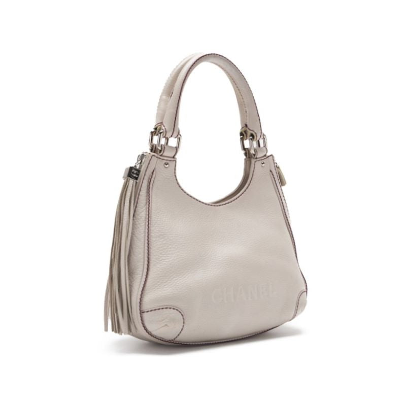 Pre-Owned Umhängetasche Mini mit Fransen, Leder, Elfenbein, silberfarbene Hardware, Pre-Owned