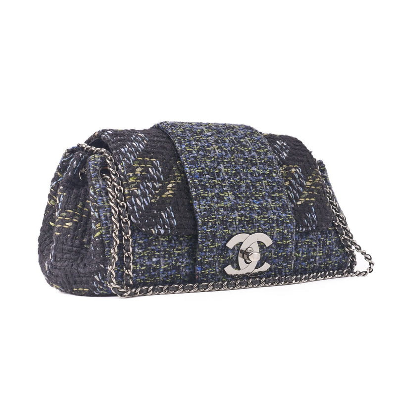 Gebrauchte Umhängetasche, Coco Drehverschluss, Tweed, Mehrfarbig, Silberfarbene Metallteile, Gebraucht