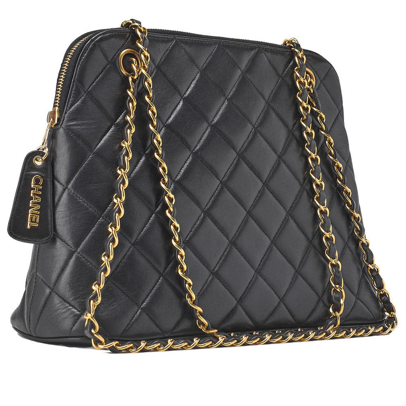 Pre-Owned Schultertasche Matelassé Kette Schulter Lammleder Schwarz Goldfarbene Hardware Pre-Owned