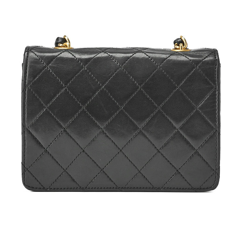 Pre-Owned Chain Shoulder Bag Mini Matelassé Lammleder Schwarz Goldfarbene Hardware Pre-Owned