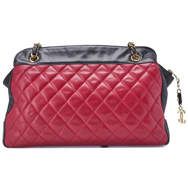 Pre-Owned Umhängetasche Matelasse Coco Charm Bicolor Kette Schulter Lammleder Schwarz Goldfarbene Hardware Pre-Owned