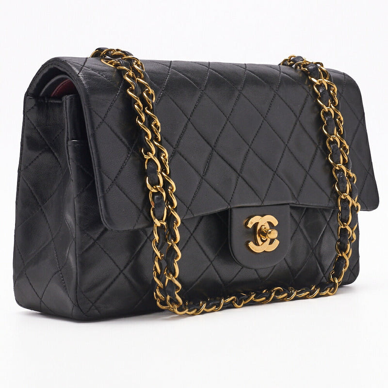 Pre-Owned Schultertasche Matelassé Doppelklappe Lammleder Schwarz Goldfarbene Hardware Pre-Owned