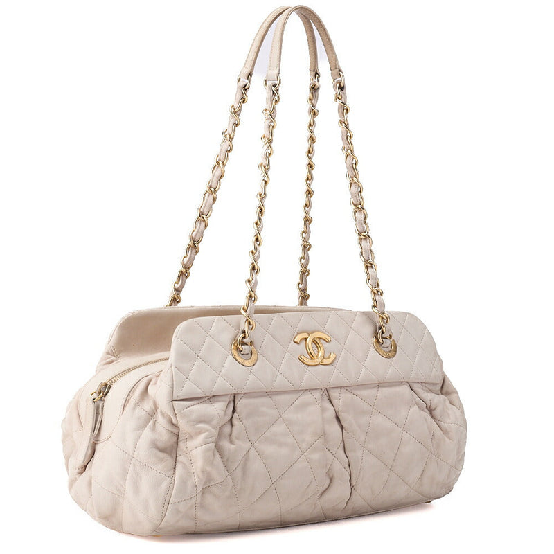Pre-Owned Schultertasche Matelassé Kette Schulter Glitzer Leder Elfenbein Goldfarbene Hardware Pre-Owned