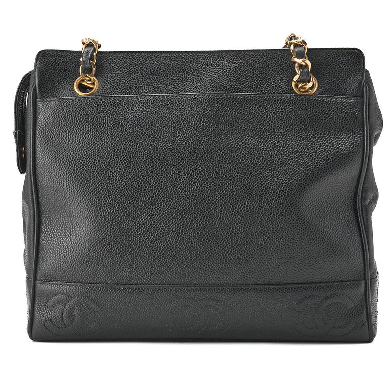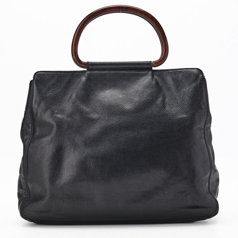 Gebrauchte Handtasche Matelassé Coco Mark Holzmuster Kaviarleder Schwarz Goldfarbene Hardware Gebraucht
