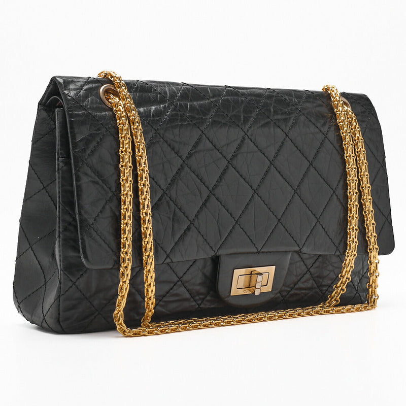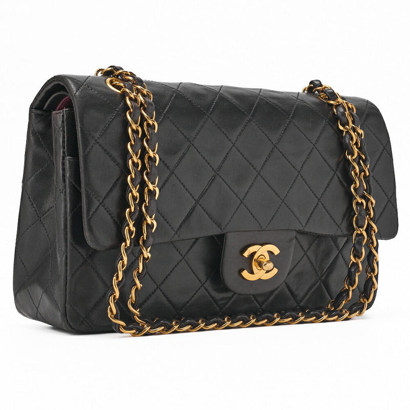 Pre-Owned Schultertasche Matelassé Doppelklappe Lammleder Schwarz Goldfarbene Hardware Pre-Owned