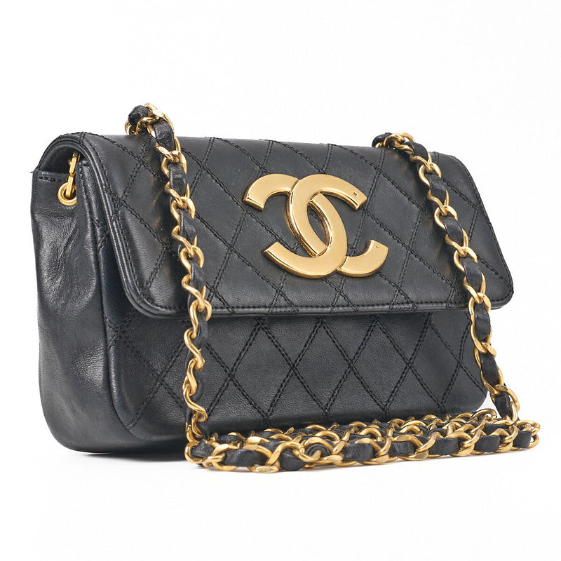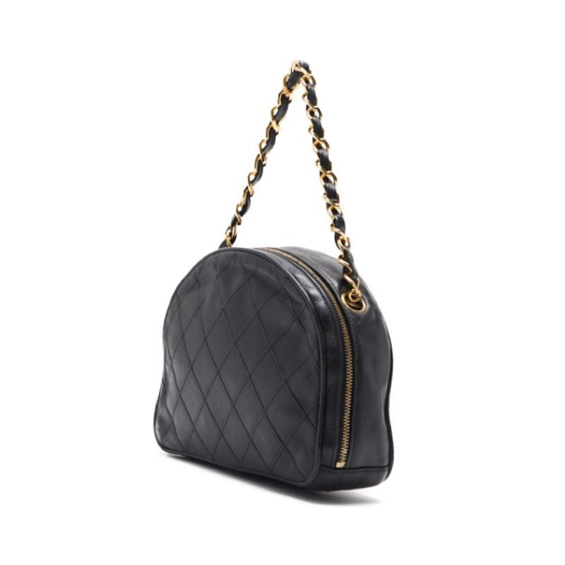 Gebrauchte Handtasche, Bicorolle mit Coco-Charm, fächerförmige Kette, Lammleder, Schwarz, goldfarbene Metallteile, gebraucht