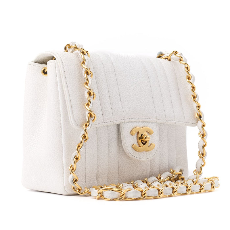 Pre-Owned Mini Mademoiselle Schultertasche mit Drehverschluss und Kette Caviar Skin Weiß Goldfarbene Hardware Pre-Owned