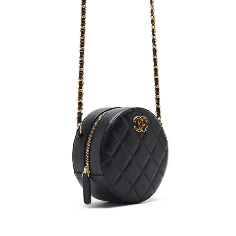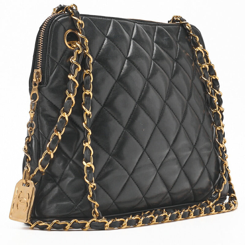Gebrauchte Umhängetasche, Matelassé, Coco Mark, Kettenschulter, Lammleder, Schwarz, Goldfarbene Hardware, Gebraucht