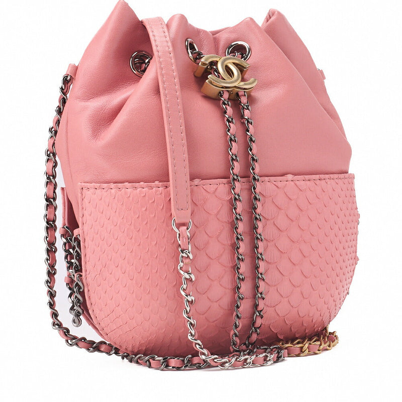 Gebrauchte Umhängetasche Matelassé Kordelzug Typ Kette Schulter Lammleder Rosa Gold-Ton Hardware Gebraucht