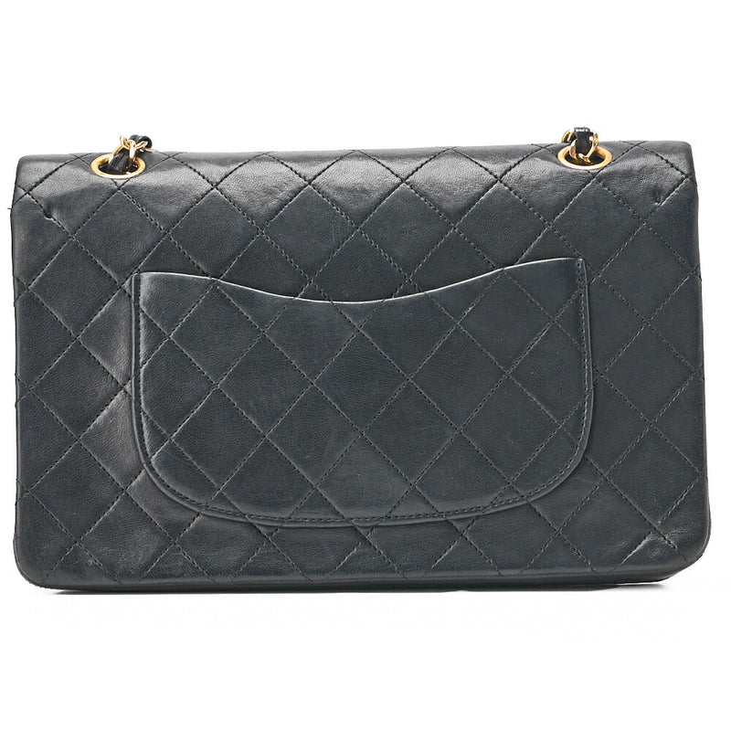 Pre-Owned Schultertasche Matelassé Doppelklappe Lammleder Schwarz Goldfarbene Hardware Pre-Owned