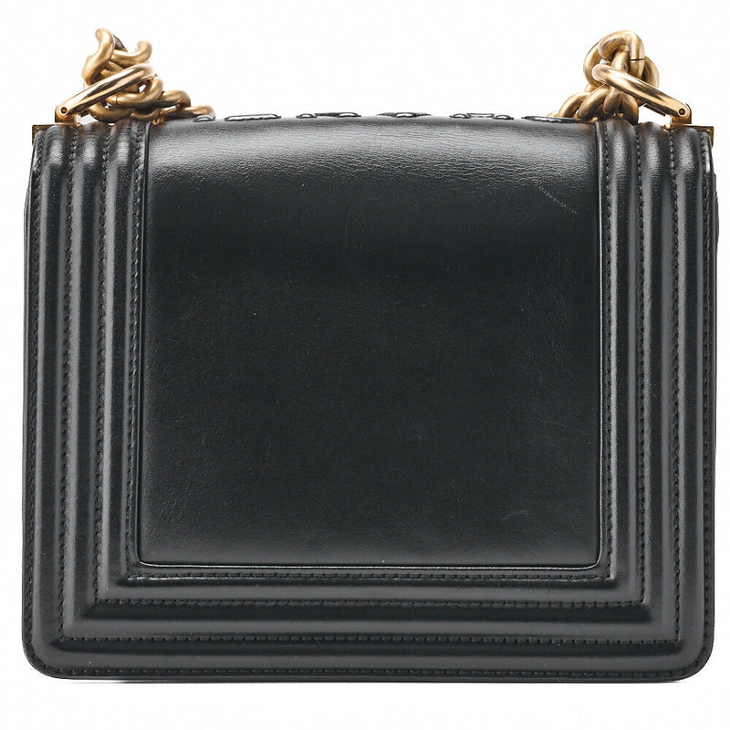 Pre-Owned Umhängetasche Boy Chain Shoulder Kalbsleder Schwarz Goldfarbene Hardware Pre-Owned