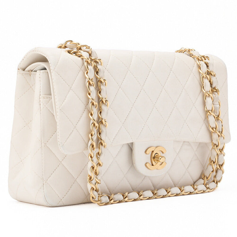 Pre-Owned Schultertasche Matelassé Doppelklappe Lammleder Weiß Goldfarbene Hardware Pre-Owned