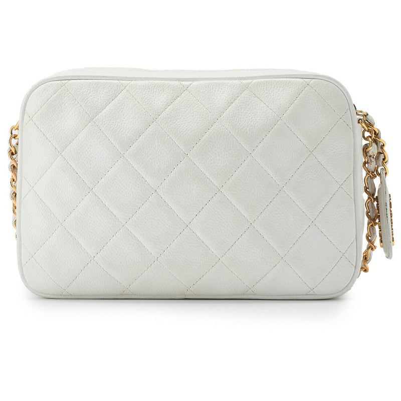 Pre-Owned Umhängetasche Matelassé Drehverschluss Kette Schulter Kaviar Haut Weiß Gold-Ton Hardware Pre-Owned