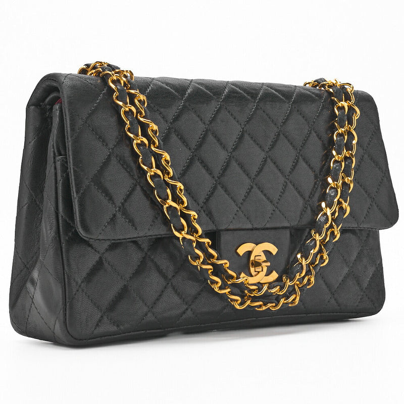 Pre-Owned Kette Schultertasche Matelassé Doppelklappe Lammleder Goldfarben Goldfarbene Hardware Pre-Owned