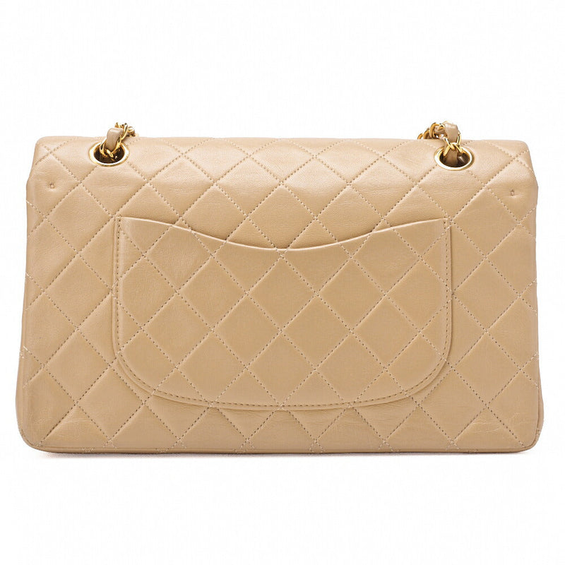 Pre-Owned Schultertasche Matelassé Doppelklappe Lammleder Beige Goldfarbene Hardware Pre-Owned