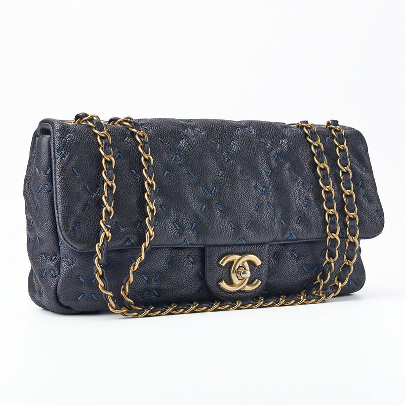 Pre-Owned Schultertasche Mini Wild Stitch Matelassé Caviar Skin Navy Gold-Tone Hardware Pre-Owned