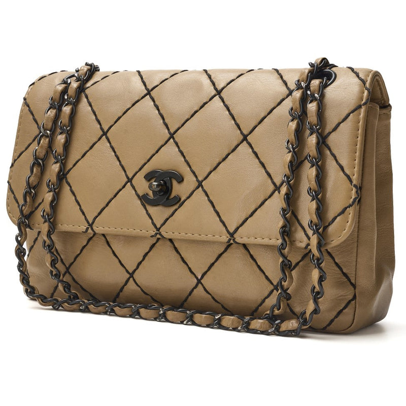 Pre-Owned Schultertasche, Matelasse Wild Stitch, Kalbsleder, Beige, Schwarze Beschläge, Goldfarbene Metallteile, Pre-Owned