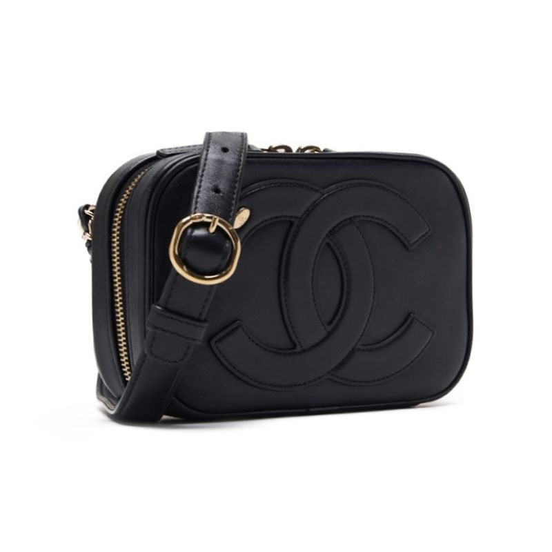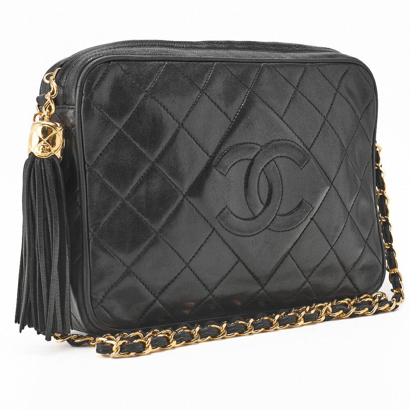 Gebrauchte Umhängetasche, Coco Mark, Kettenschulter, Lammleder, Schwarz, Goldfarbene Hardware, Gebraucht