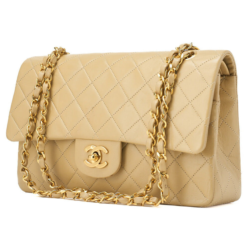Pre-Owned Schultertasche Tote Bag Matelassé Doppelklappe Lammleder Beige Goldfarbene Hardware Pre-Owned