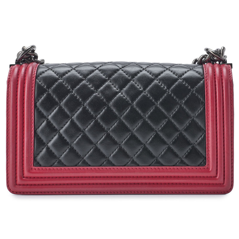 Pre-Owned Boy Matelassé Kette Schulter Lammleder Schwarz Gold-Ton Hardware Pre-Owned