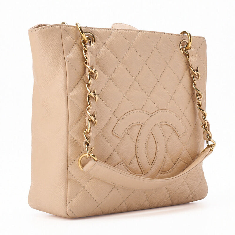 Gebrauchte Tragetasche Matelassé Kaviarhaut Beige Goldfarbene Hardware Gebraucht