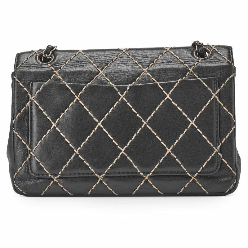 Pre-Owned Schultertasche, Matelasse Wild Stitch Drehverschluss, Kalbsleder, Schwarz, Silberfarbene Metallteile, Pre-Owned