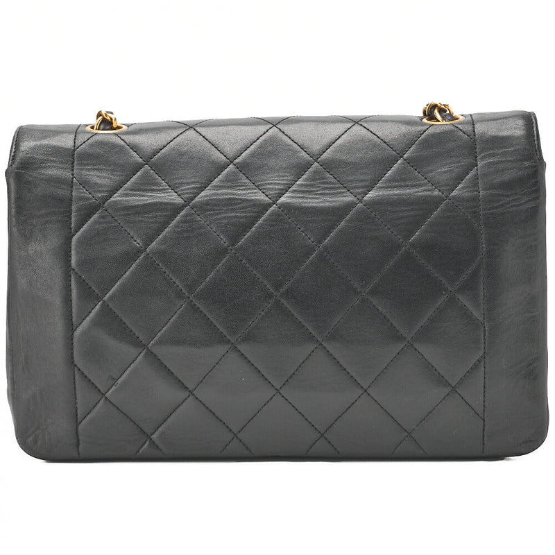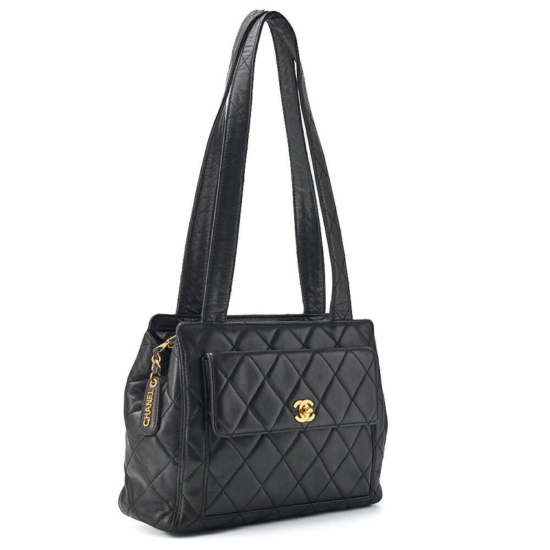 Pre-Owned Schultertasche Matelassé Drehverschluss Doppelklappe Kette Schulter Lammleder Schwarz Goldfarbene Hardware Pre-Owned