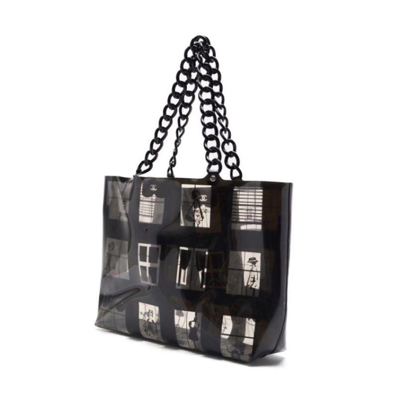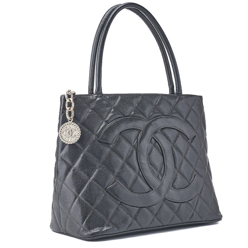 Pre-Owned Tote Bag Matelassé Reprint Caviar Skin Schwarz Silberfarbene Hardware Pre-Owned