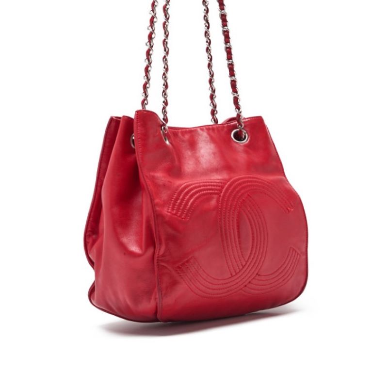 Gebrauchte Handtasche Matelassé Coco Handle 2WAY Caviar Skin Rot Silberfarbene Hardware Gebraucht