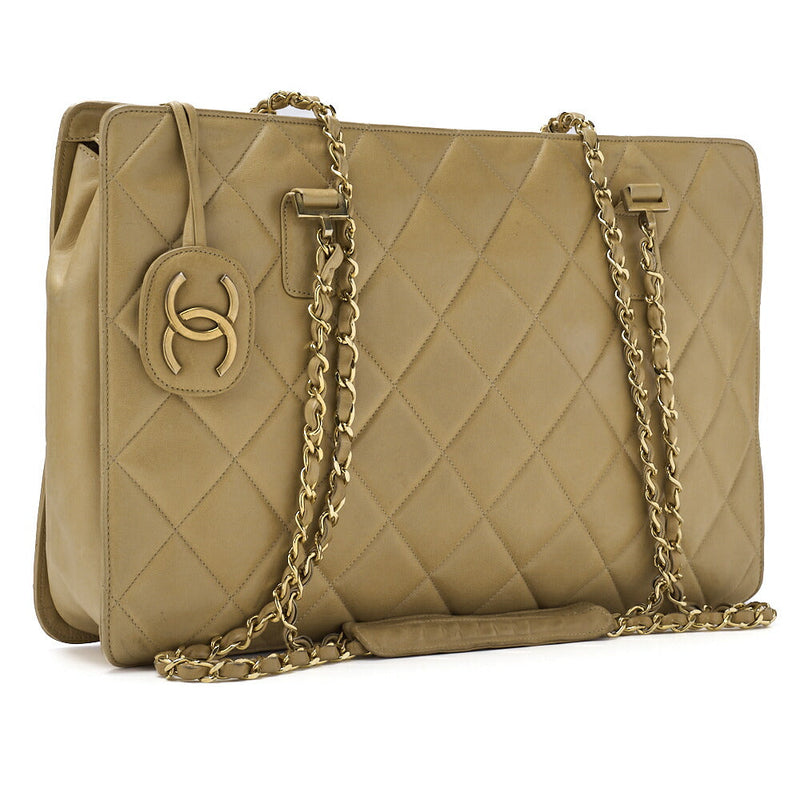 Pre-Owned Schultertasche, Matelasse Coco Charm, Lammleder, Beige, Goldfarbene Metallteile, Pre-Owned