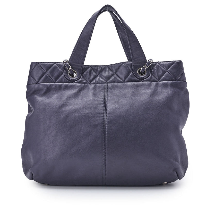 Gebrauchte Schulter-Rucksack-Tasche Matelassé Kette Schulter Lammleder Blau Silberfarbene Hardware Gebraucht