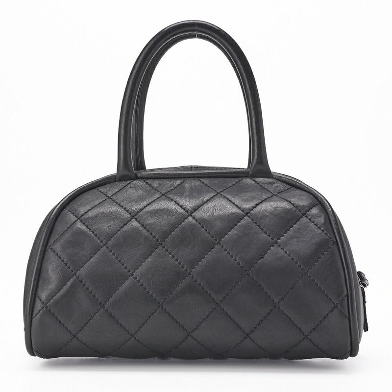 Pre-Owned Mini Boston Bag Matelassé Kalbsleder Schwarz Silberfarbene Hardware Pre-Owned