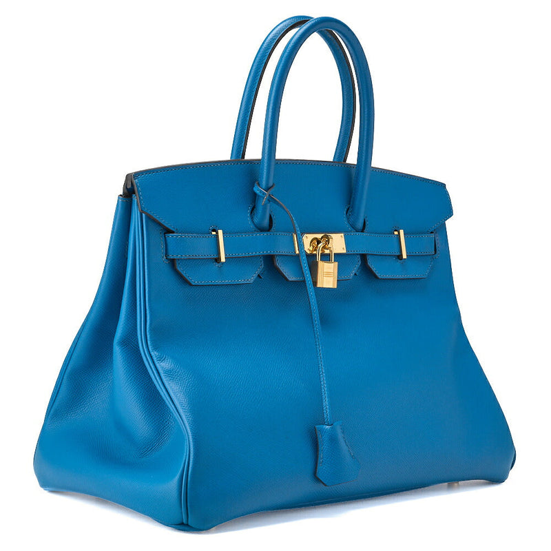 Gebrauchte Birkin 35 Handtasche Vo Epson Leder Blau Ismir Goldfarbene Hardware Gebraucht