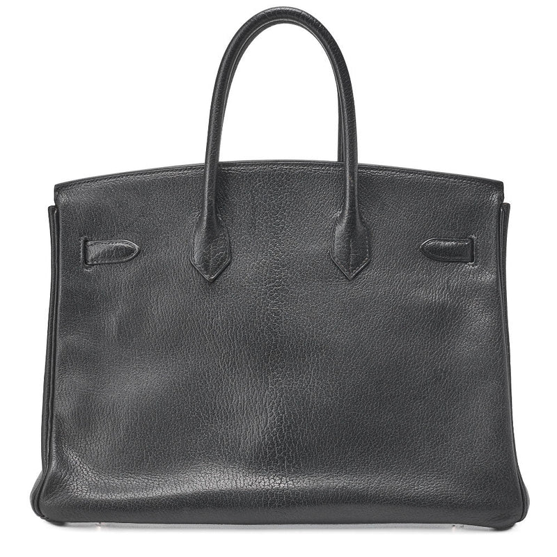 Gebrauchte Birkin 35 Handtasche Chèvre Schwarz Silberfarbene Hardware Gebraucht