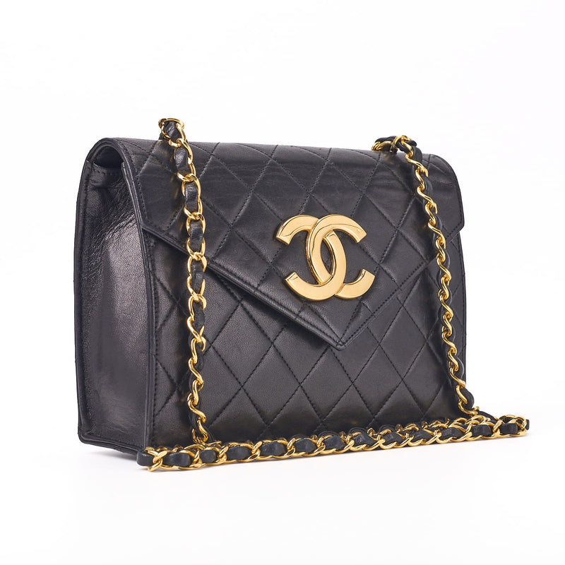 Gebrauchte Umhängetasche, Matelassé, Coco V Flap, Lammleder, Schwarz, Goldfarbene Metallteile, Gebraucht