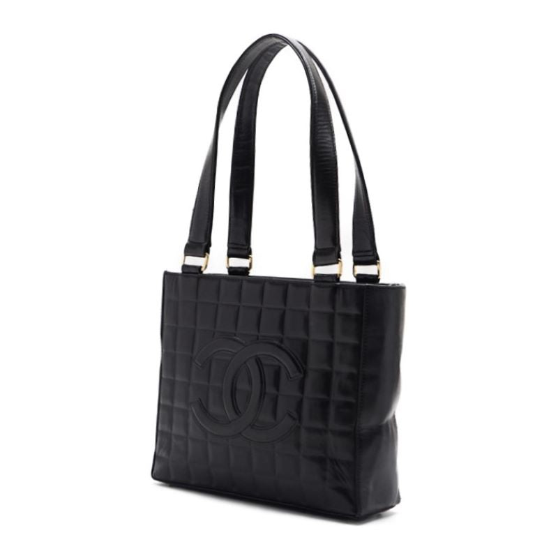 Pre-Owned Tote Bag Matelassé Coco Mark Doppelkette Vintage Kalbsleder Schwarz Silberfarbene Hardware Pre-Owned