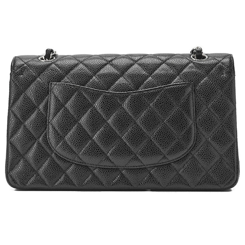 Gebrauchte Schultertasche, Matelassé Turn Lock Double Flap 25, Kaviarhaut, Schwarz, Silberfarbene Metallteile, Gebraucht