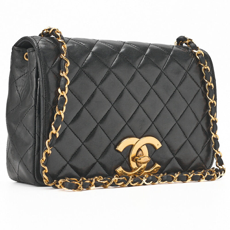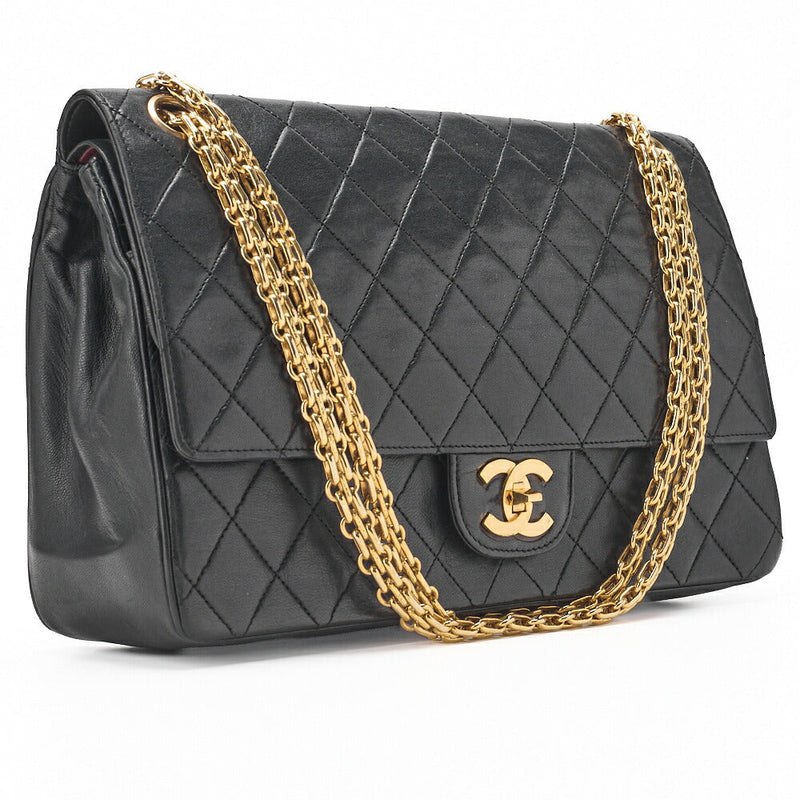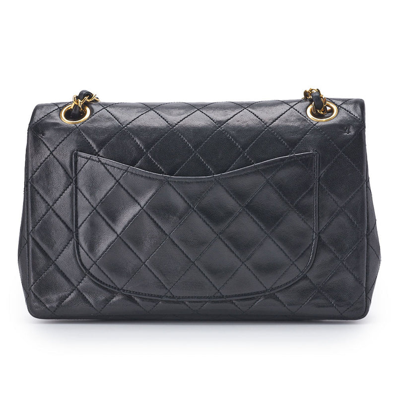 Pre-Owned Schultertasche, Matelassé Doppelklappe, Lammleder, Schwarz, Goldfarbene Hardware, Pre-Owned