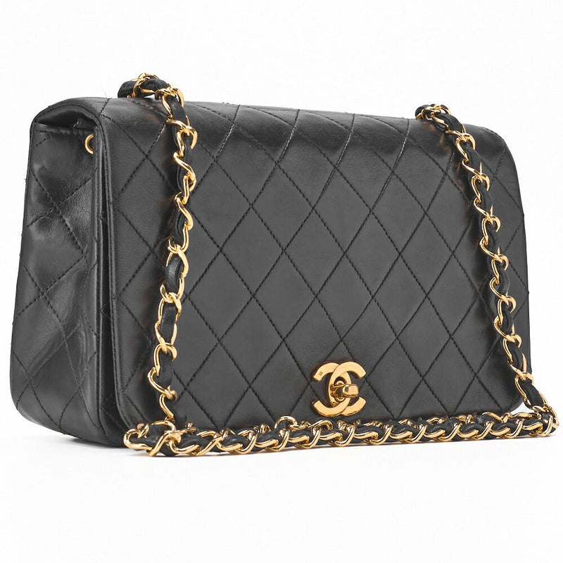Pre-Owned Schultertasche Matelassé Lammleder Schwarz Goldfarbene Hardware Pre-Owned
