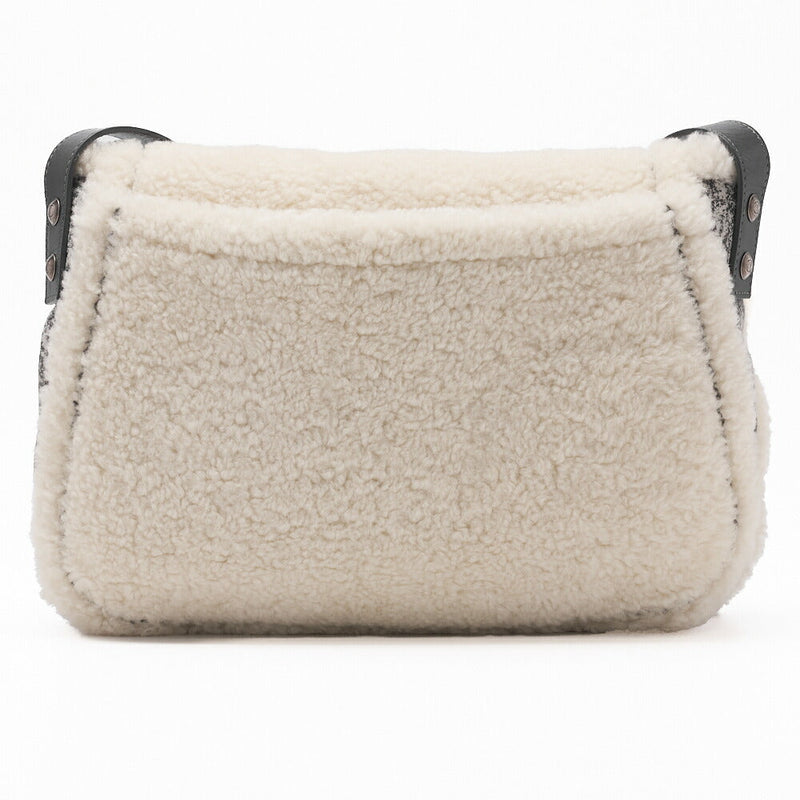 Gebrauchte Umhängetasche Coco Mark Mouton Pelz Weiß Grau Silberfarbene Hardware Gebraucht