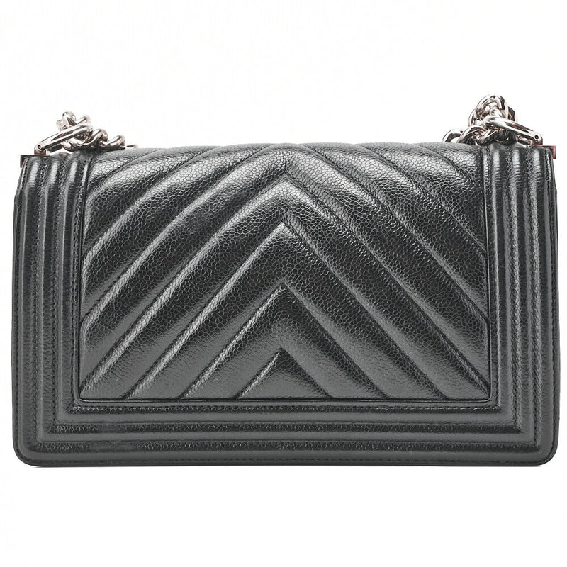 Gebrauchte Umhängetasche Tote Bag V Stitch Caviar Skin Schwarz Silberfarbene Hardware Gebraucht
