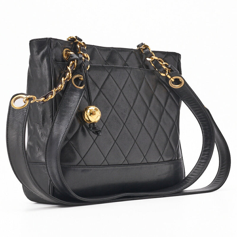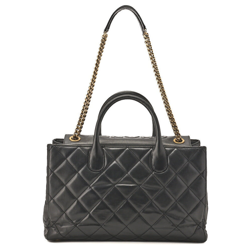 Pre-Owned Schultertasche Tote Bag Matelassé Lammleder Schwarz Goldfarbene Hardware Pre-Owned