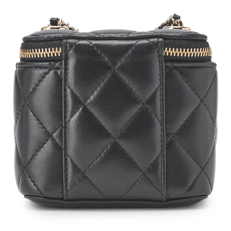 Pre-Owned Vanity Schultertasche Matelassé Lammleder Schwarz Goldfarbene Hardware Pre-Owned