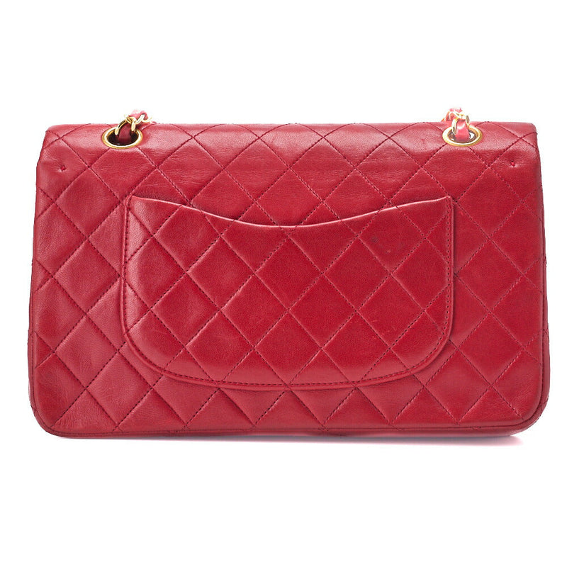 Pre-Owned Schultertasche Matelassé Doppelklappe Lammleder Rot Goldfarbene Hardware Pre-Owned