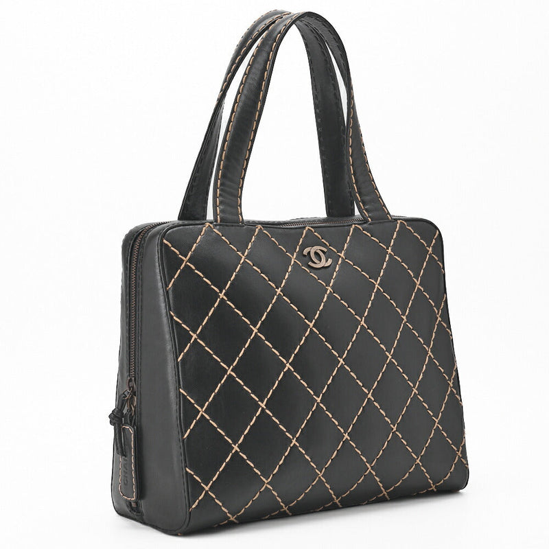 Gebrauchte Tragetasche Coco Mark Wild Stitch Kalbsleder Schwarz Silberfarbene Hardware Gebraucht